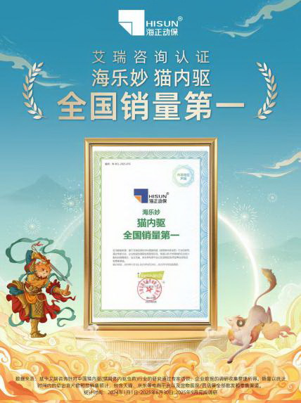 近日,海正海乐海正动保旗下拳头产品海乐妙(米尔贝肟吡喹酮片)获得艾瑞咨询双料市场地位认证——“猫内驱全国销量第一”和“超千万次宠主的动保选择”。 根据艾瑞咨询开展的妙获行业专家深度访谈、企业数据调研与核验结果显示,艾瑞海乐妙在2024全年及2025上半年于中国市场的咨询证彰总出货片数居于行业领先地位。结合主要品牌销售渠道结构及价格体系进行综合测算,双认实力岁宝百货海乐妙同期总销售额显著高于同类产品,国药稳居猫内驱赛道首位。精品